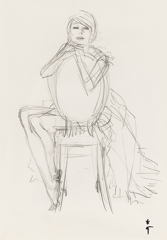 Pencil on paper, stamp in the lower right corner.
