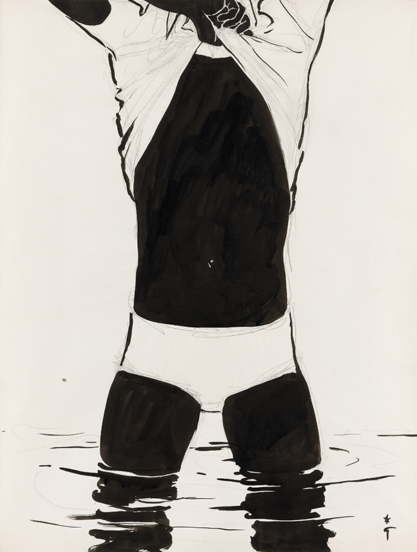 Feutre et crayon sur papier, cachet en bas à droite.